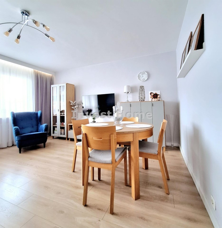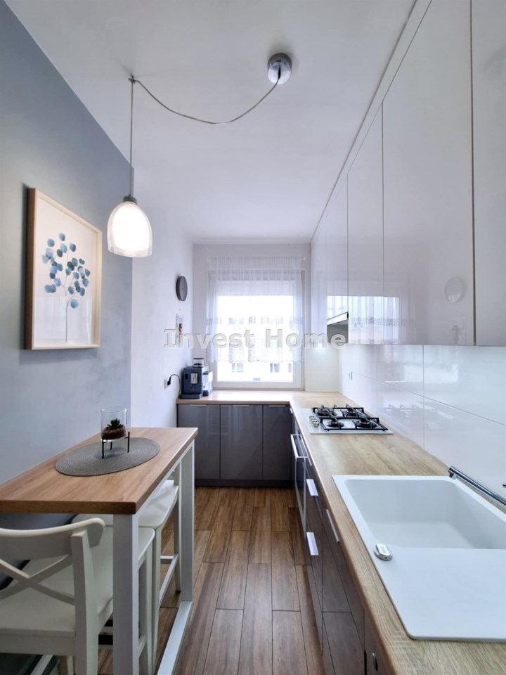 Funkcjonalne trzy osobne pokoje - pełniące funkcje: salonu, sypialni oraz gabinetu, oddzielna jasna kuchnia w której została wykonana zabudowa pod wymiar przez stolarza, duża łazienka.
